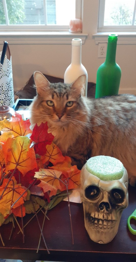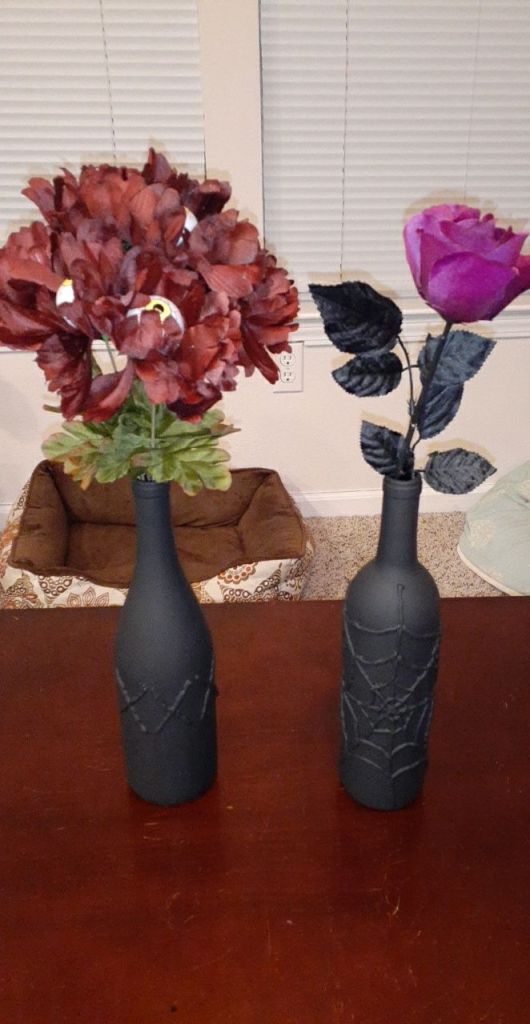 With good ol’ quarantine still going strong, my cabin fever has been battling with the desperate need for all things Halloween. My compromise? One trip to the Dollar Store, Target, a local winery, and a thrift store to buy all sorts of goodies to make my own decorations (all while masked of course). Bank account approved and uses up some of the crafting supplies I have accumulated over the years. With a little inspiration from Pinterest and some assistance from Google images, I present my creations!